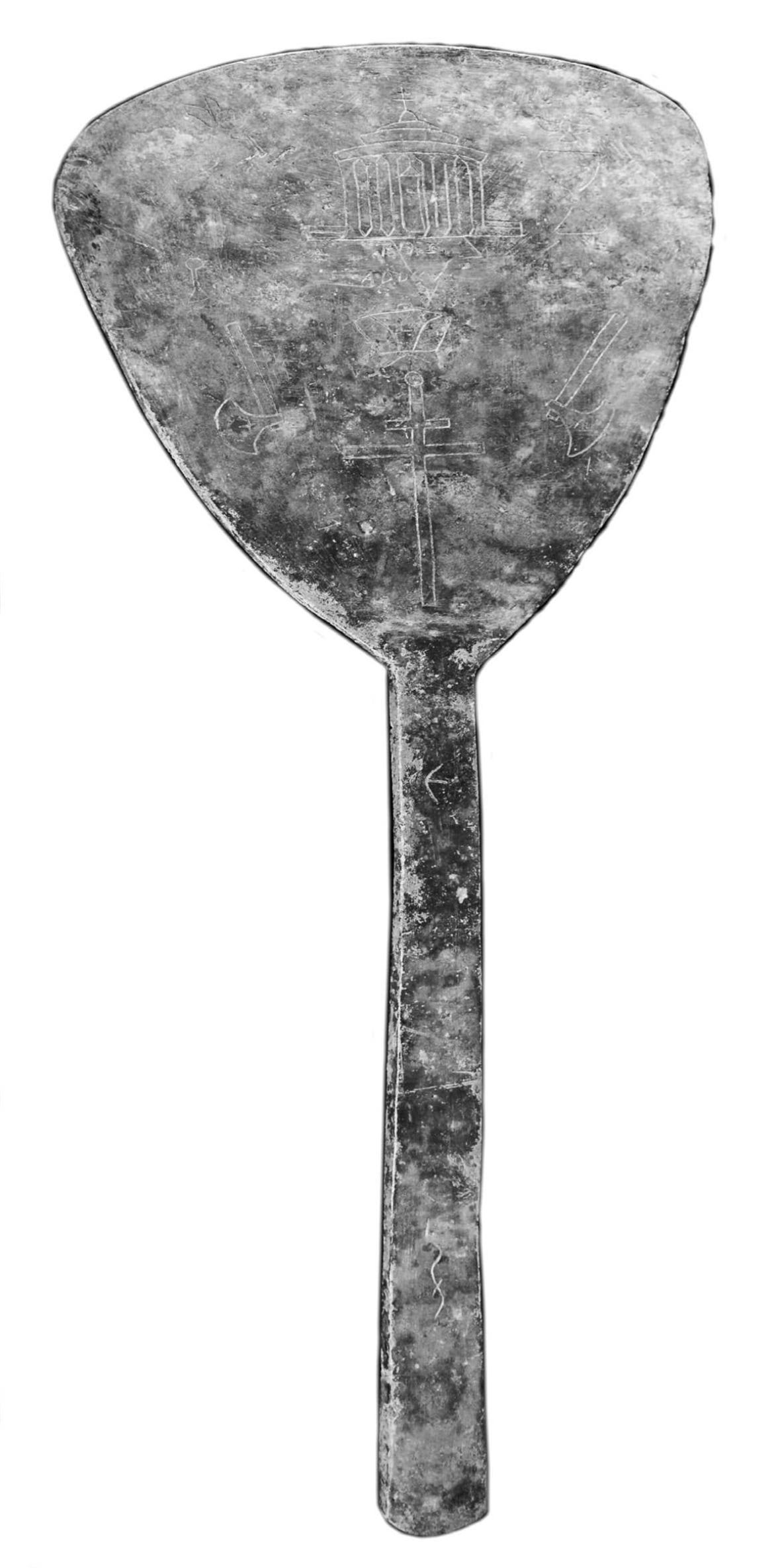 This side of the artifact contains an image of the Temple in Rhoda, which is near Sedona Arizona.